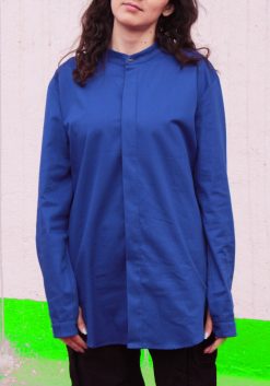 La Camisa Mao Unisex esta hecha de tela durable 100% de algodón mexicano. Tiene tres botones de presión, acabados en metal y resina, en el cuello y puños. Los demás botones están encubiertos, favoreciendo un diseño minimalista. Estilizada con dobladillo curvo y con etiquetas hechas a mano, parte de nuestros esfuerzos zero waste. Una pieza elegante y versátil.